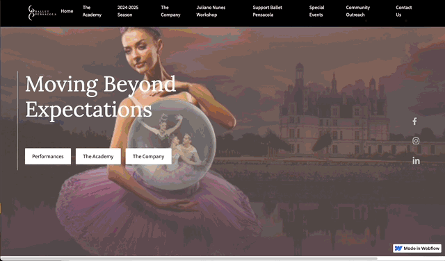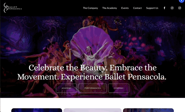 With each season, Ballet Pensacola curates a dynamic repertoire of three to four major productions: a fall performance, the timeless wonder of The Nutcracker each December, a special winter event, and a spring finale. Each production is designed to elevate the artistry and experience of dance for audiences across the region. When a dear friend needed help with a quick turn around and Dani was booked, I knew that our Sr Designer Sarah would knock this out of the park for them. They were losing service within 48 hours so we put up a splash page for quick registrations and then still worked our magic on the rest of the website.
