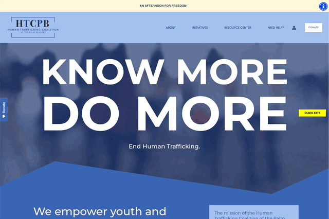 The Human Trafficking Coalition of the Palm Beaches is to serve as the unifying force in Palm Beach County for human trafficking awareness and prevention through education, community collaboration, and survivor empowerment. Did you know that HTCPB was one of our first WebWish Grant winners?!? It was a JOY to work with them again, see how much they have grown and give them a new digital resource center.
